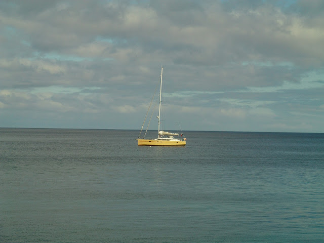 Veleiro com bandeira francesa ancorado ao largo do porto da Calheta.