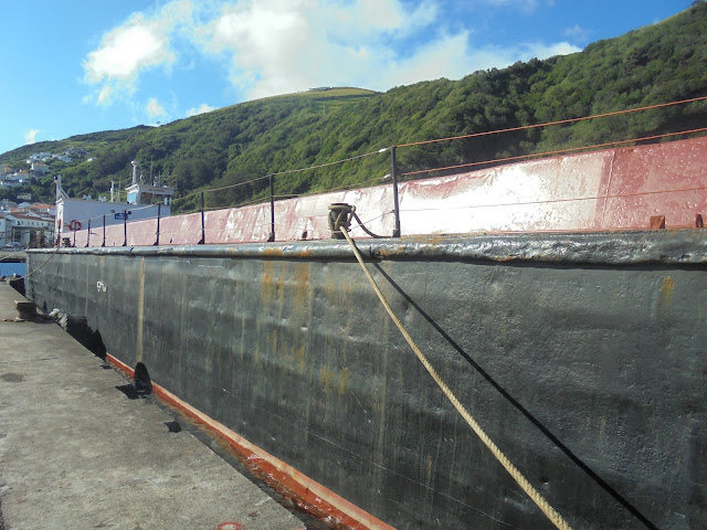 Presença no porto de Velas do Batelão "funil" Varosa, da empresa Somague, batelão este que