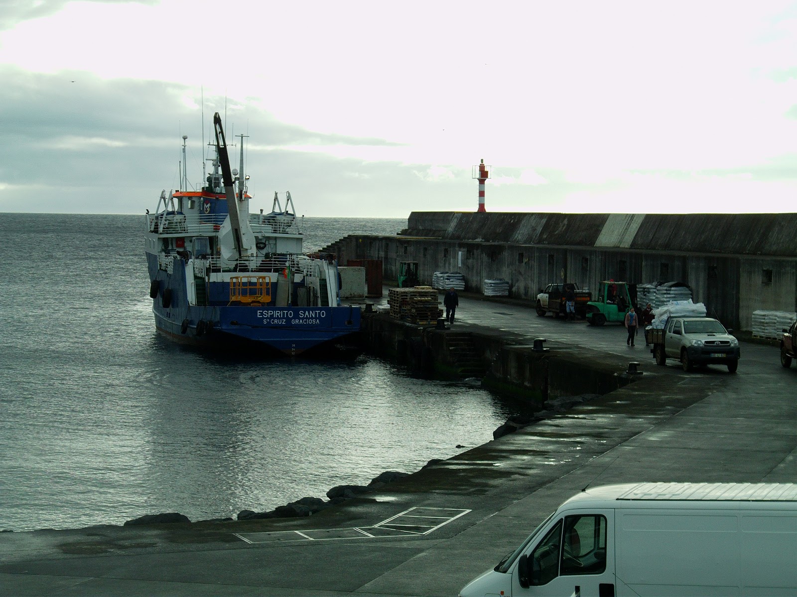 Escala no Porto da Calheta no dia 25/01/2013. De salientar a quantidade de carga descarregada.