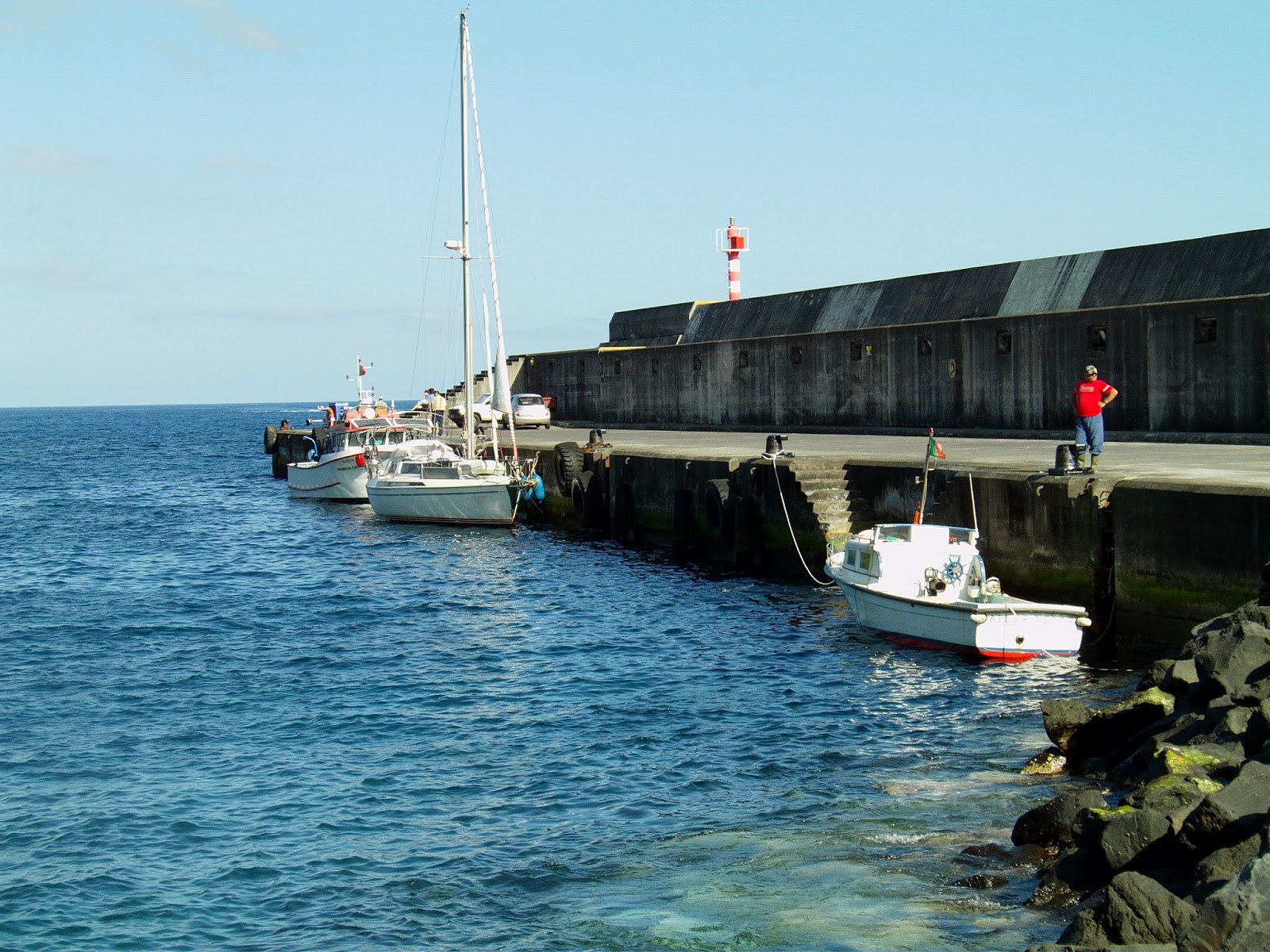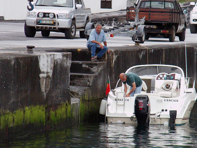 Ao final da tarde o porto da calheta é um local de grande afluência da população local, em especial dos proprietários de embarcações de recreio. Fomos convidados a tomar uma bebida numa dessas embarcações, neste caso na embarcação Roaz VII do nosso colaborador Fernando Henriques, ao qual deixamos aqui o nosso agradecimento.