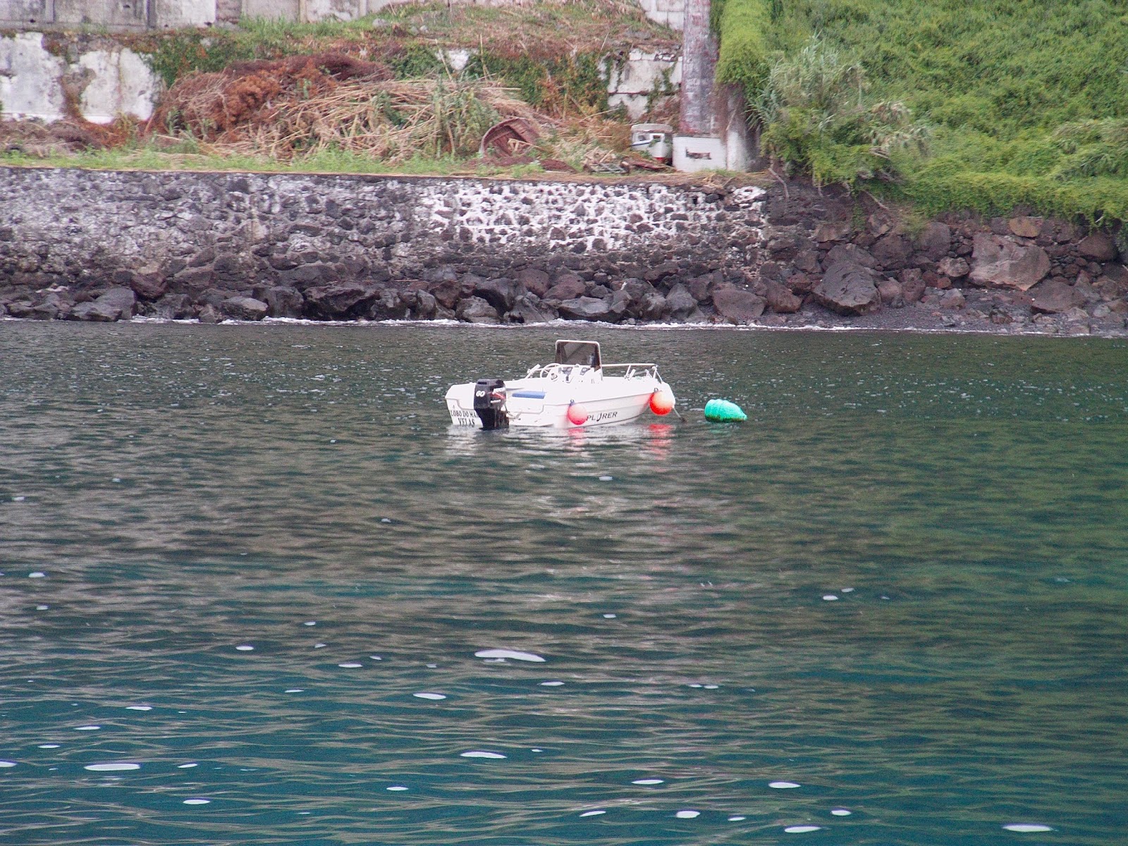 Embarcação de recreio local pertença do calhetense Urbano Silveira ancorada na baía do porto da Calheta.