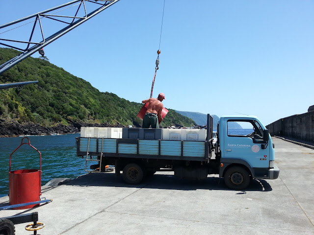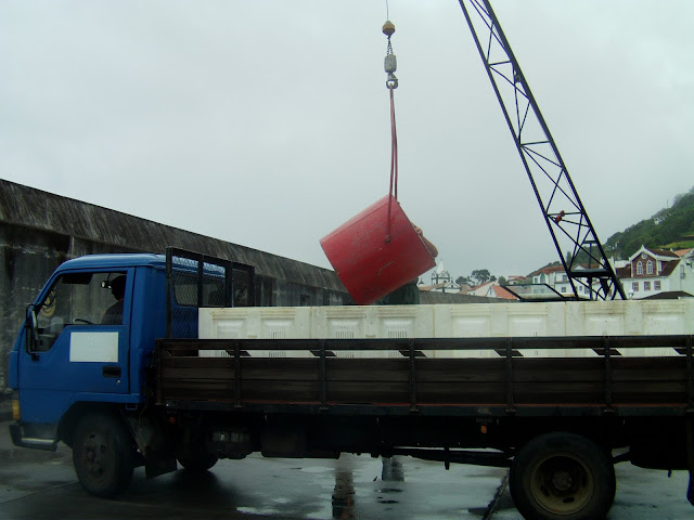 Descarga desta embarcação do Pico pertença do armador José Eduardo,