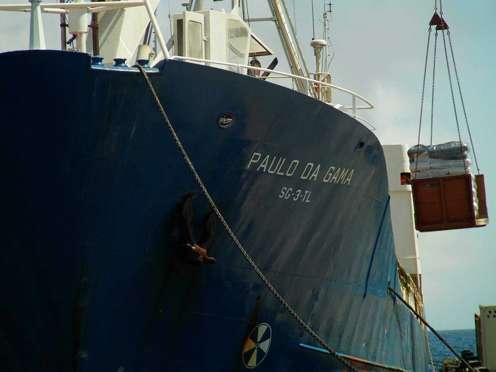 Navio Paulo da Gama em serviço no porto da Calheta.
