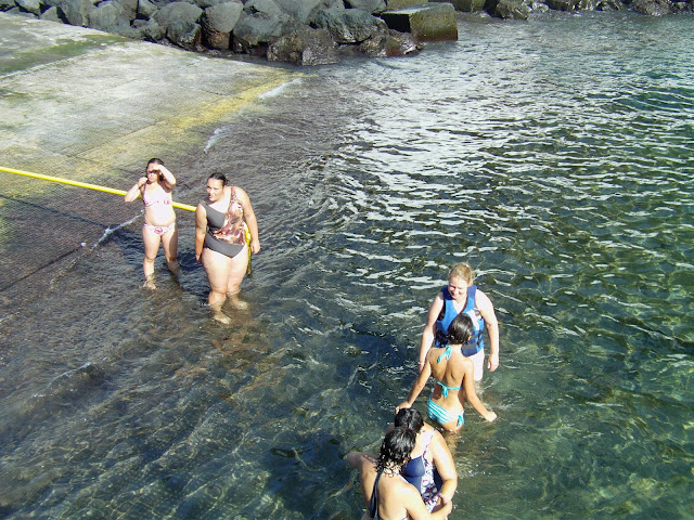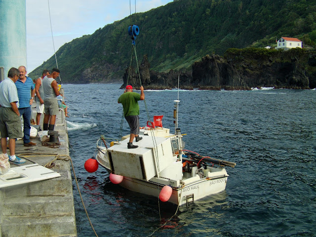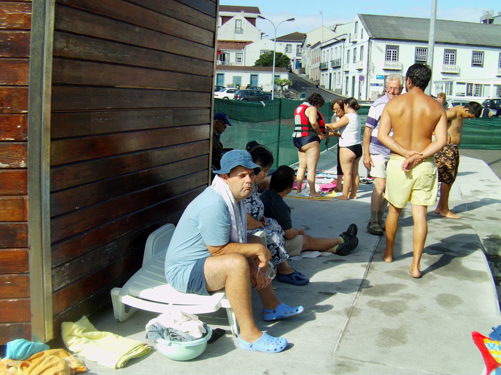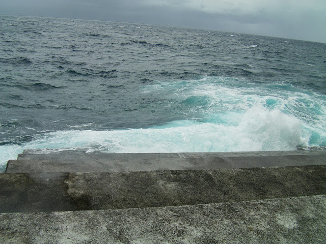 Estado do mar no porto da Calheta num fim de semana em que está previsto um agravamento do estado do tempo devido a uma depressão que está de passagem pelo arquipélago dos Açores. De realçar também a recolha por parte de alguns funcionários da Câmara das Gaivotas e das redes de proteção da zona balnear.