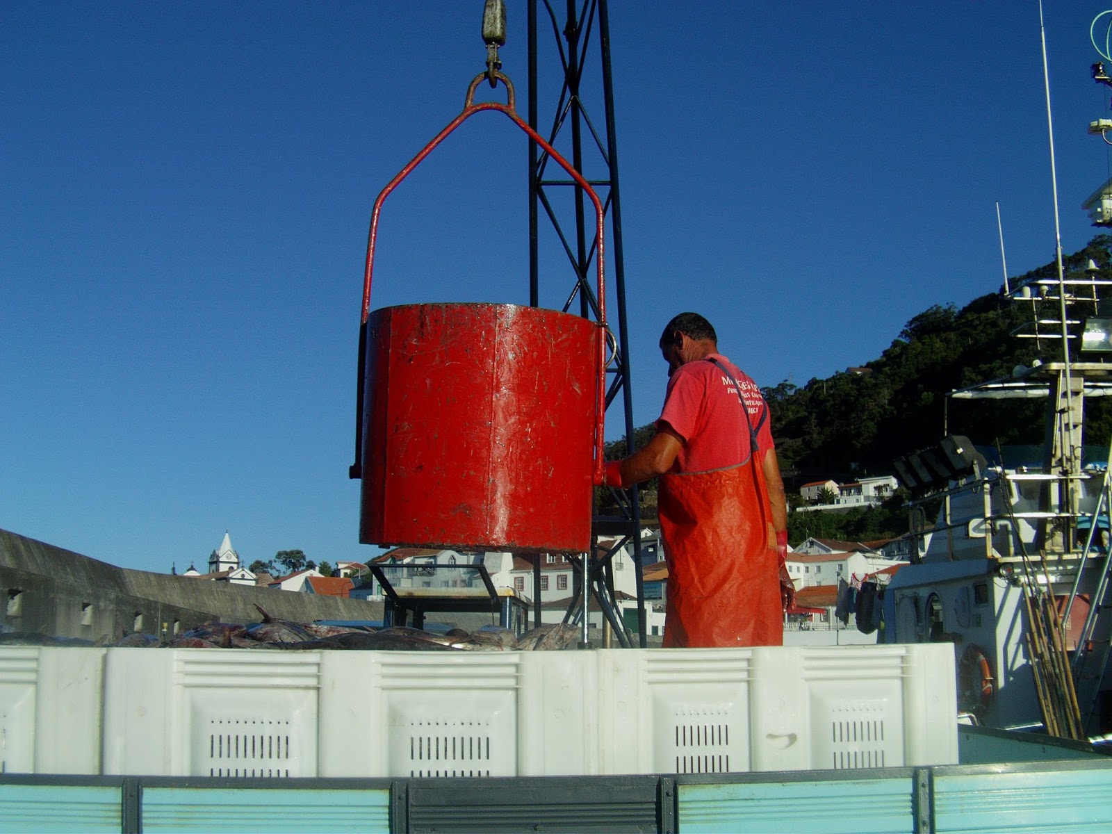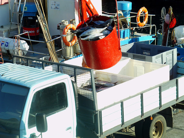 Traineira Balaia (actualmente com o nome de Maria Leontina), que pertenceu à frota da Conserveira Santa Catarina e que muitas vezes escalou o porto da Calheta para realizar descargas de atum.