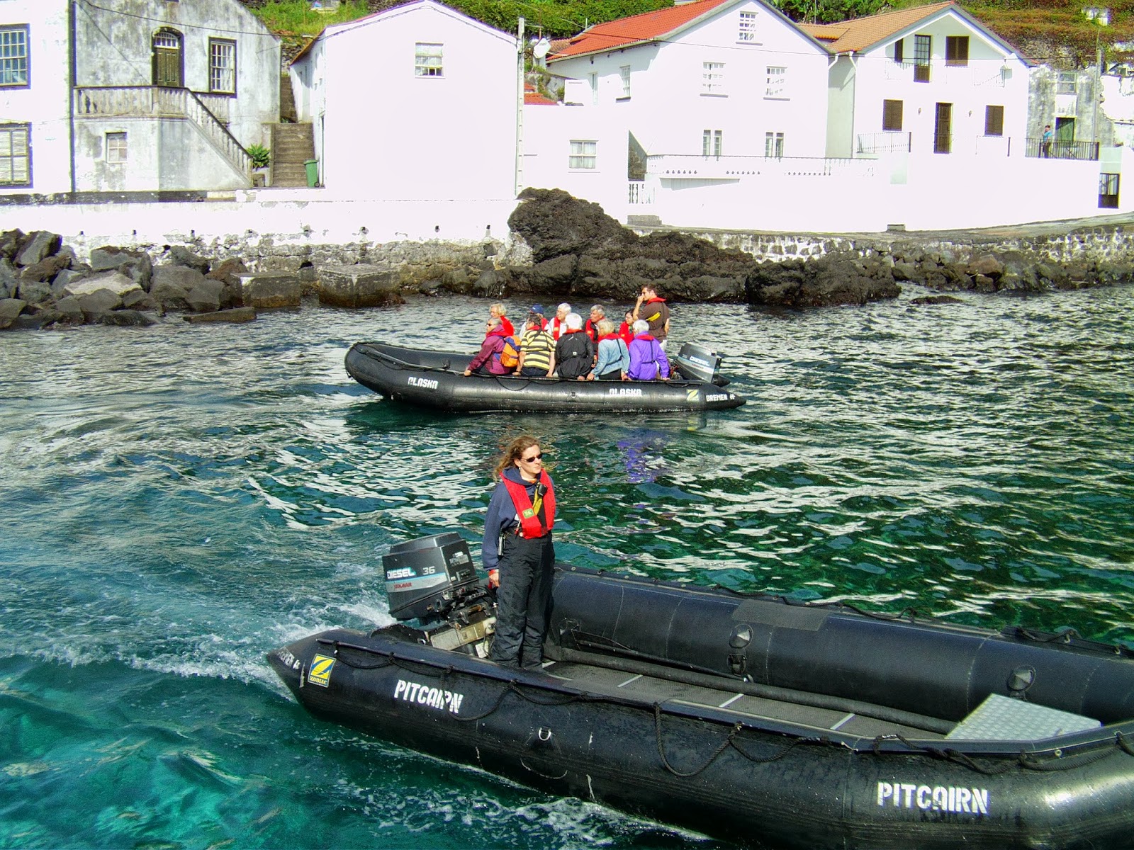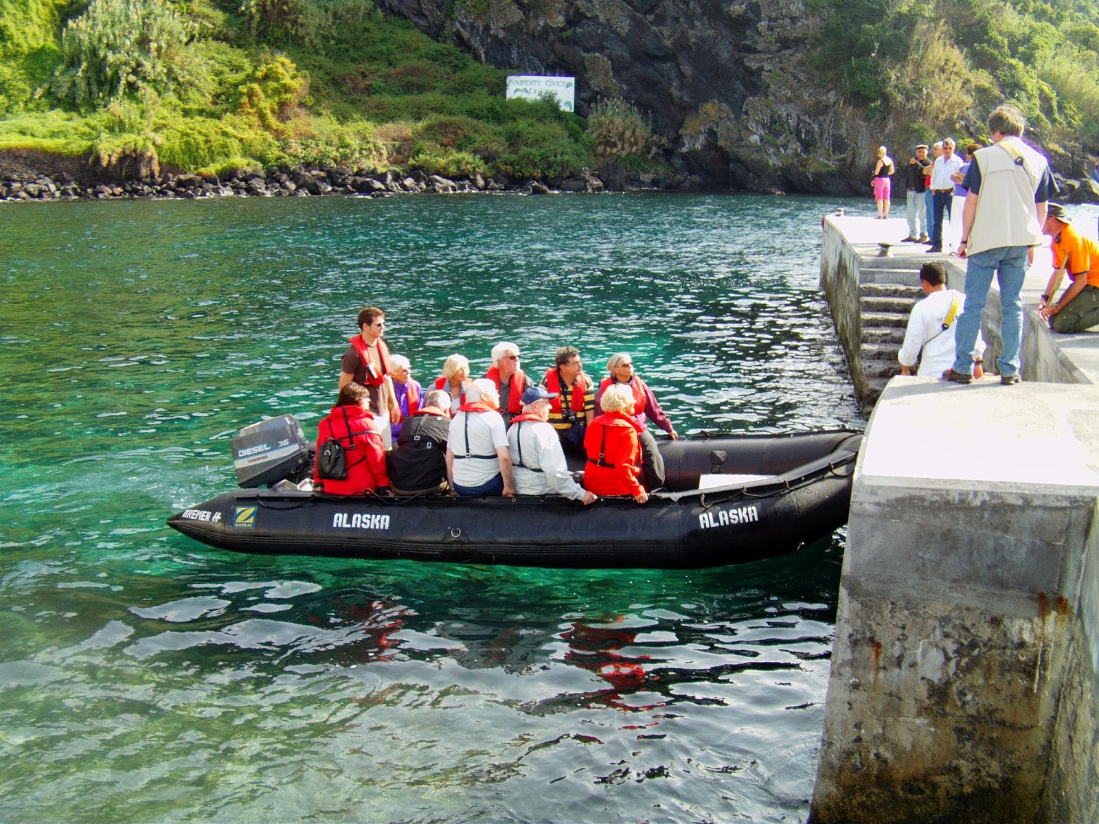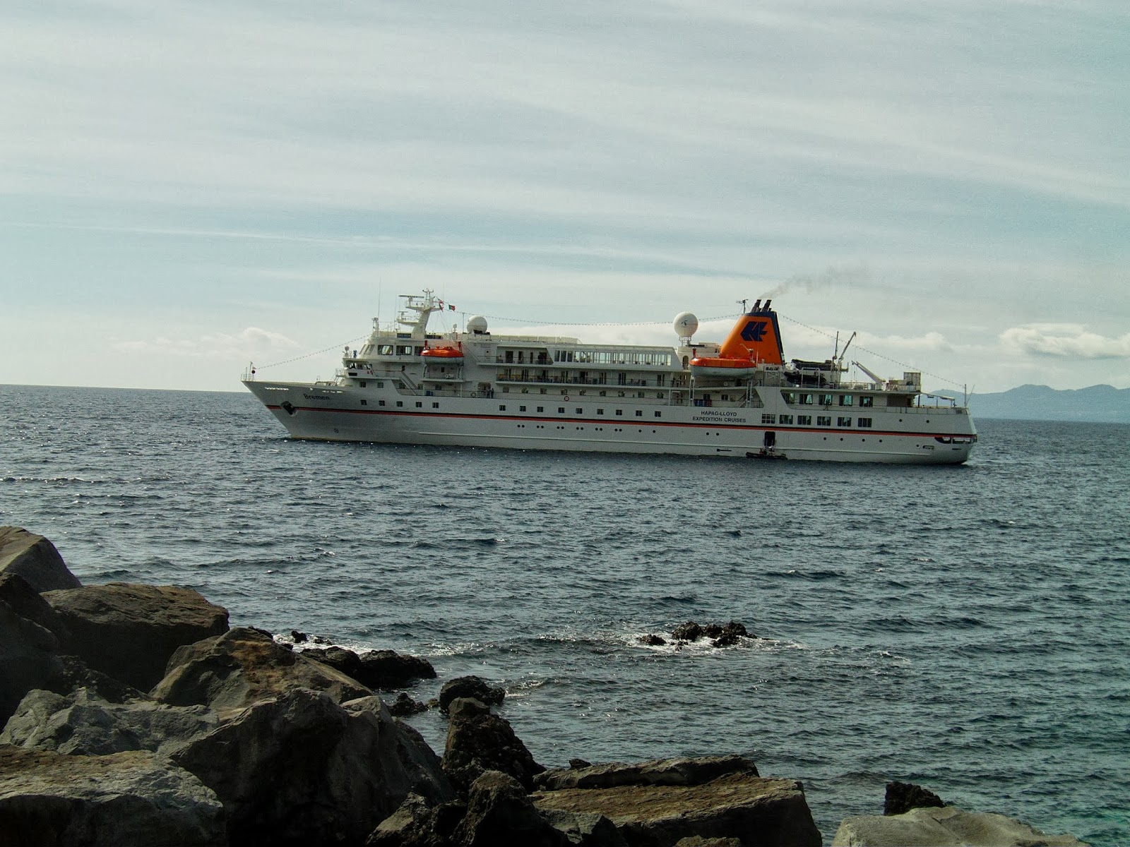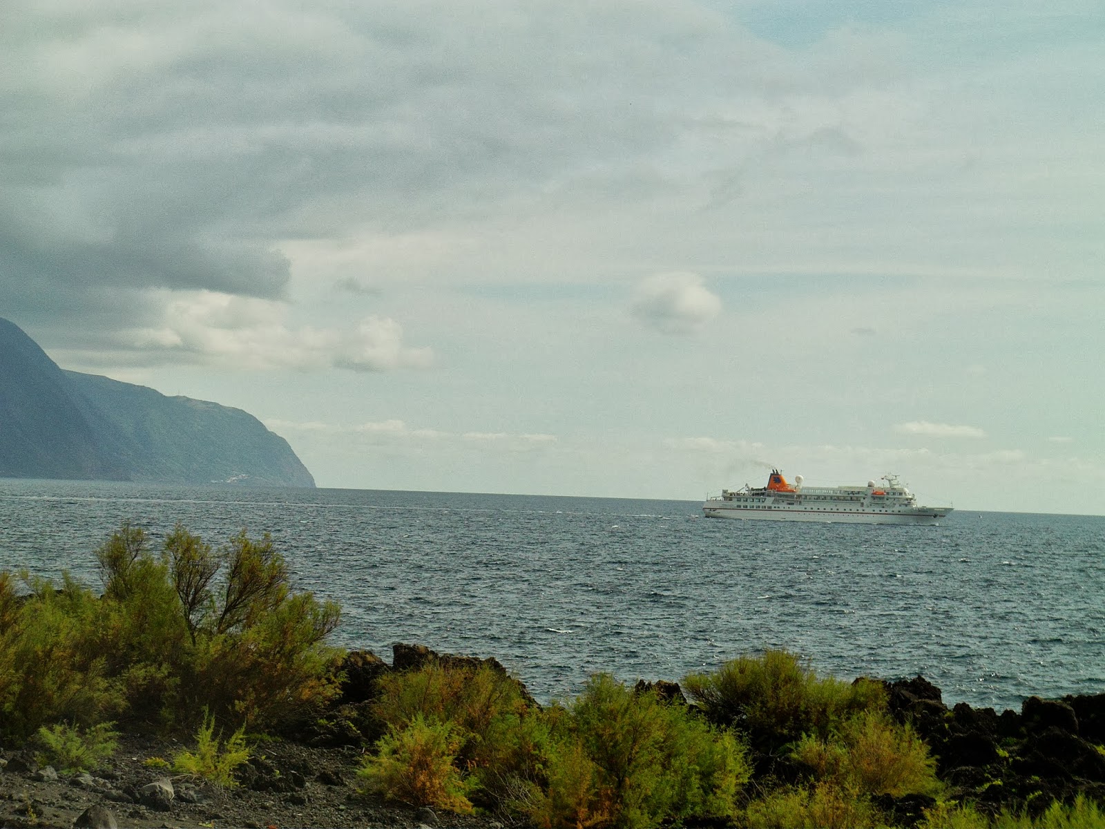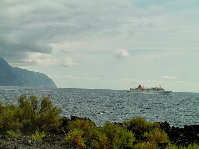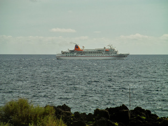 Acrescentamos também a este post uma foto do Cruzeiro Bremen no porto de Velas, onde se pode
