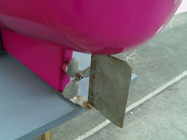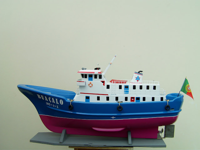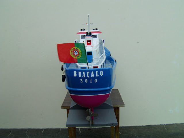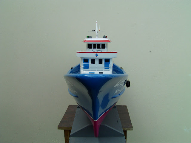 Barco de radio modelismo construido em fibra de vidro.