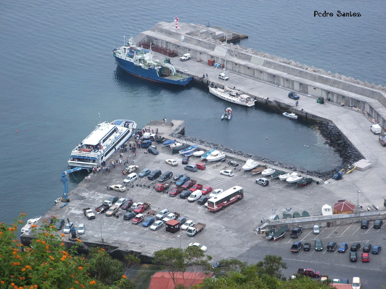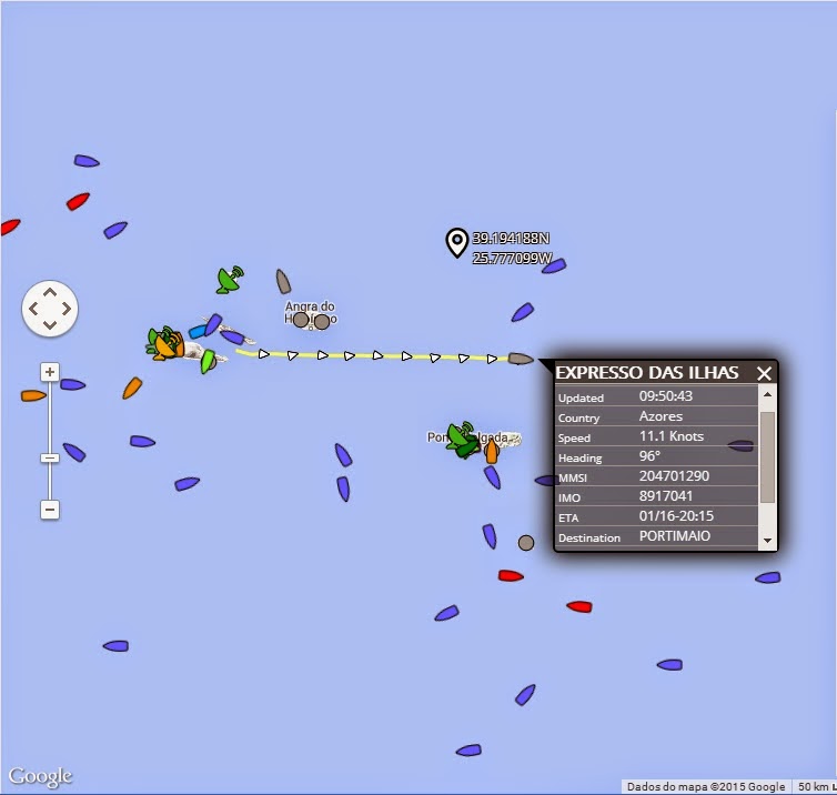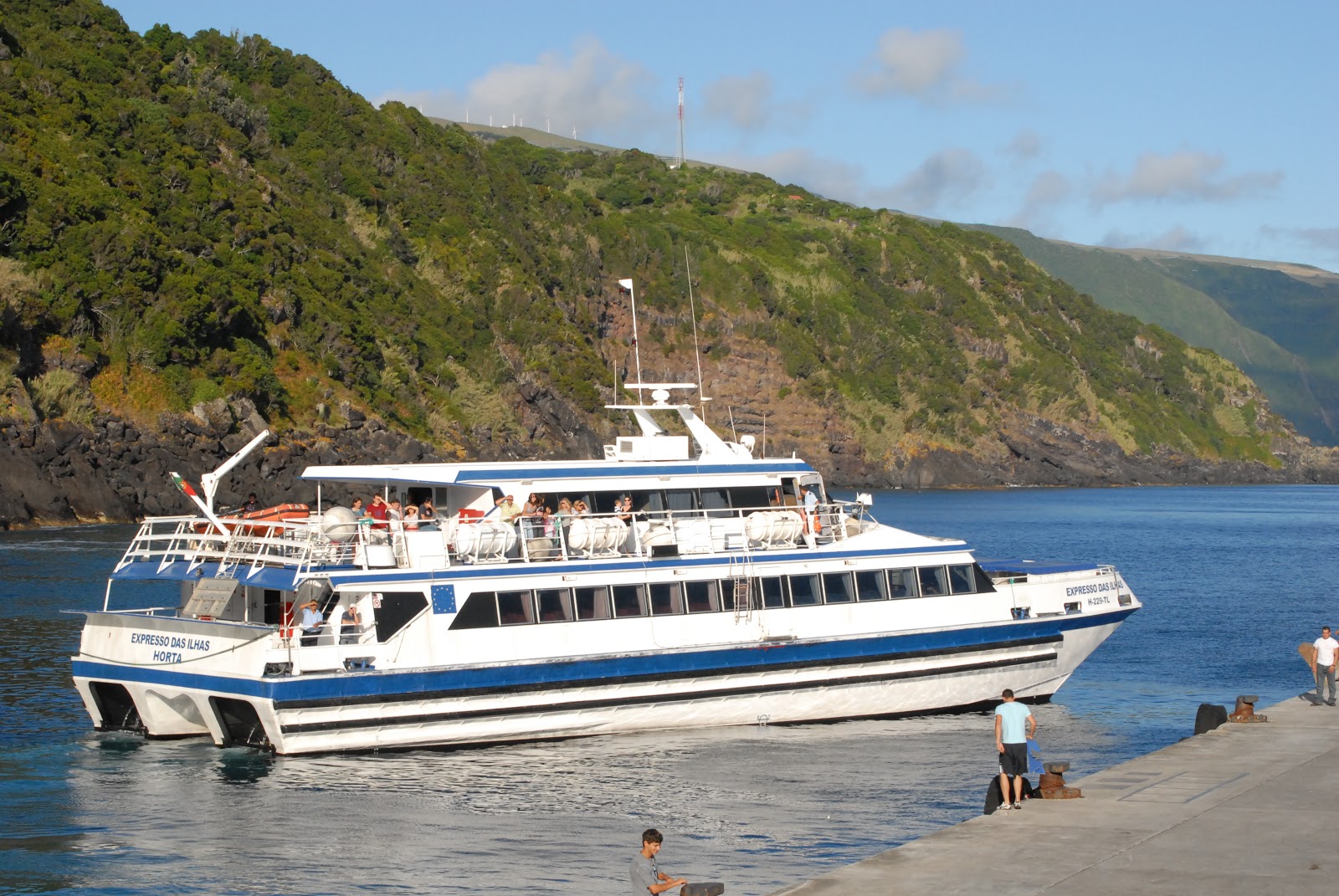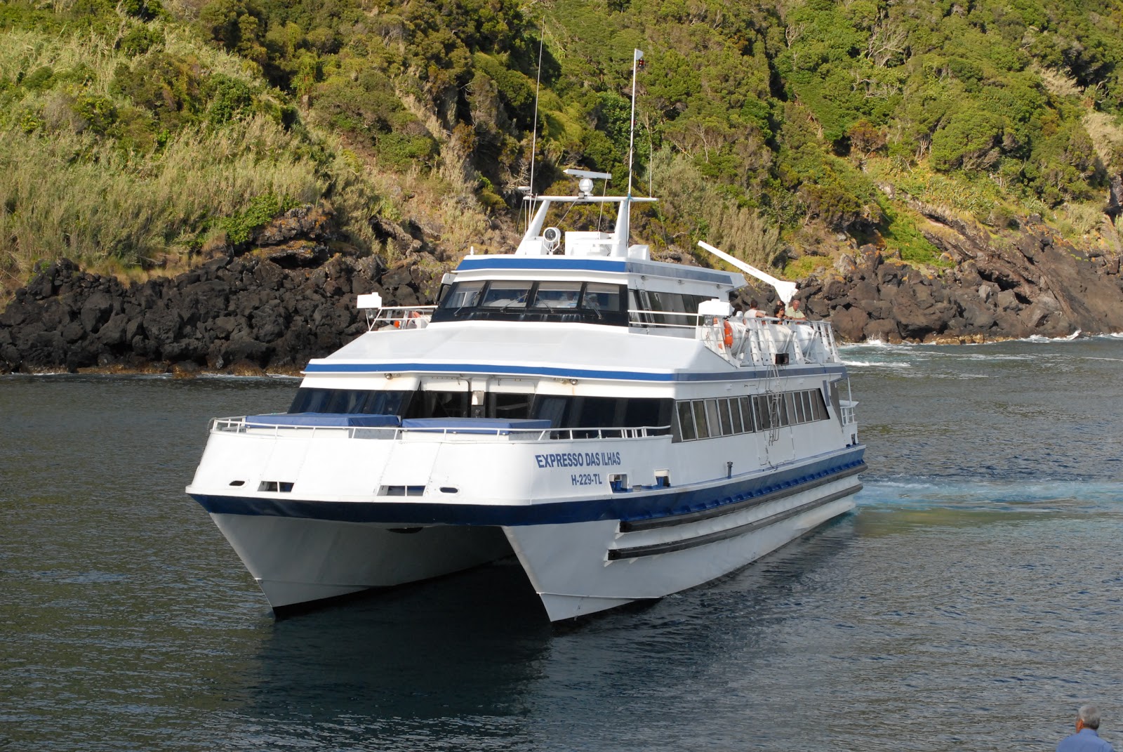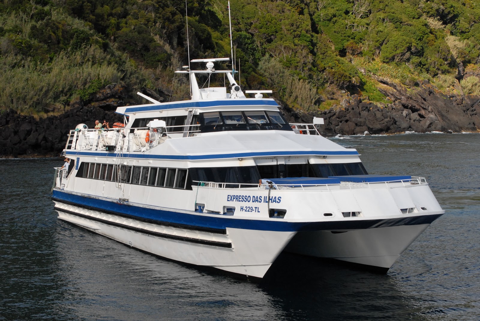Embarcação de passageiros que muitas vezes escalou o nosso porto, fazendo a ligação entre Calheta-Angra, de saída dos Açores em direcção a Portimão para depois seguir para os Camarões onde está sediado o seu novo armador.