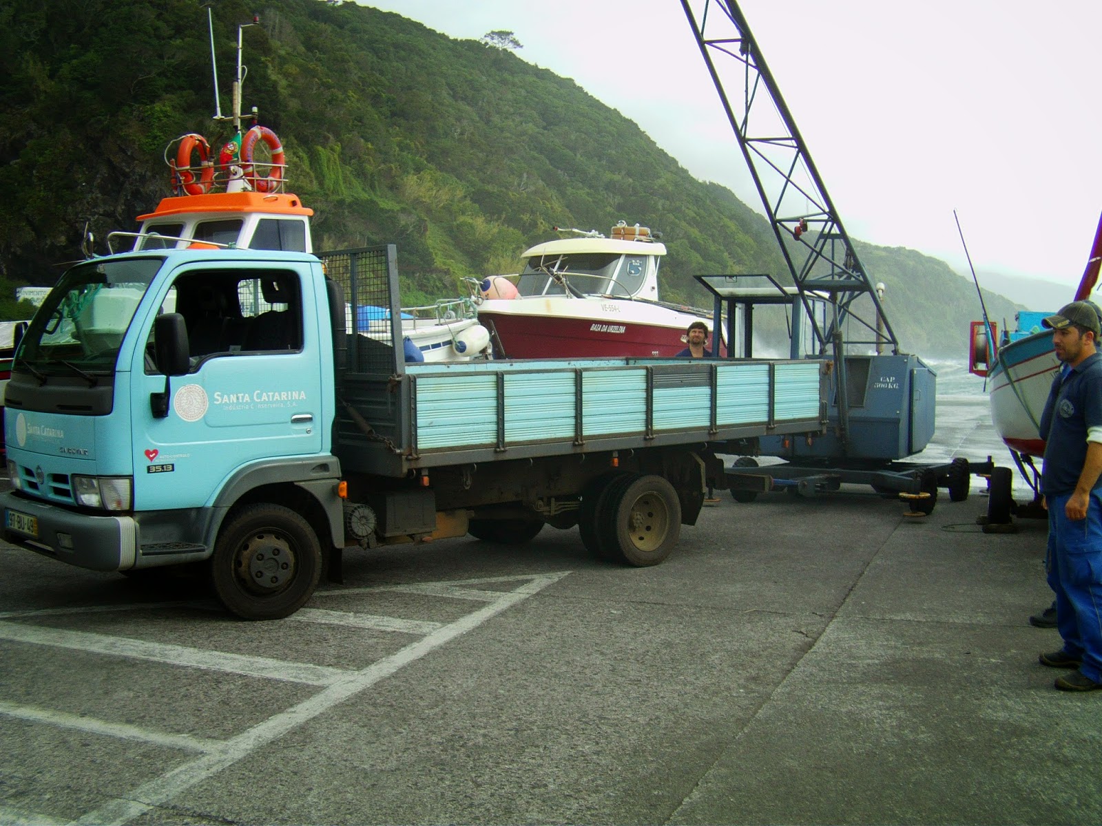 Grua usada para descargas de peixe, transportada ontem (10/01/2013), para a fábrica Santa Catarina.
