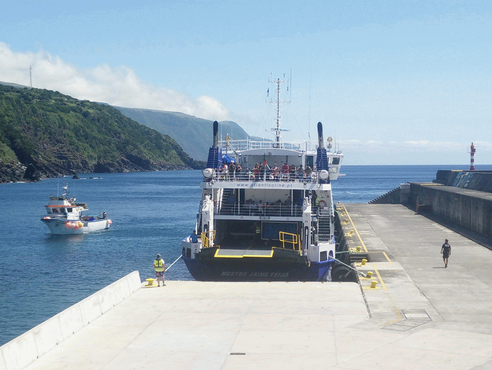 até à ilha Terceira. De salientar a versatilidade da rampa RO-RO para a utilização destes ferrys.