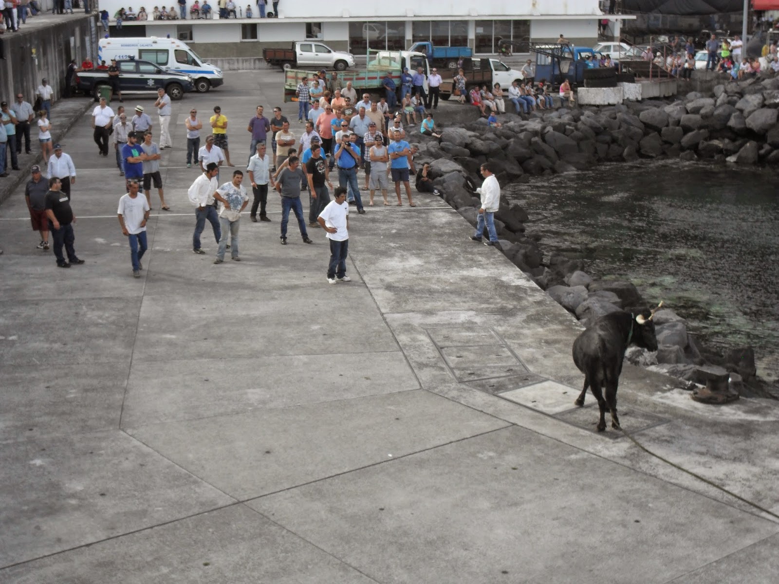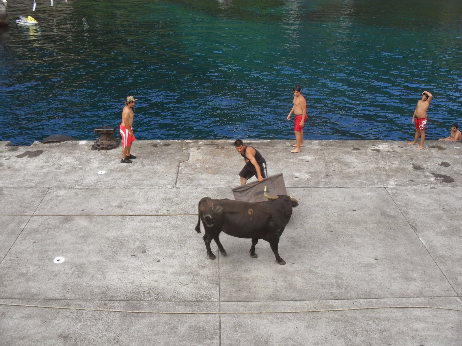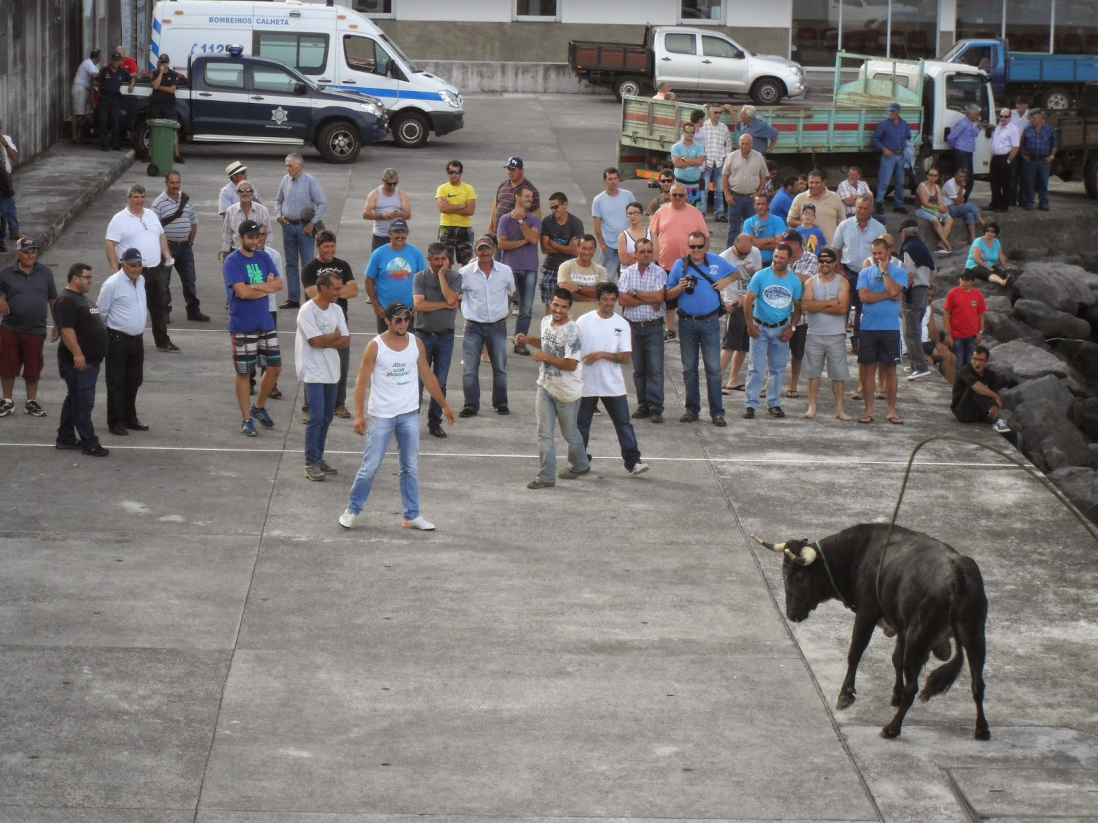 Continuação da Tourada à Corda no Porto da Calheta.